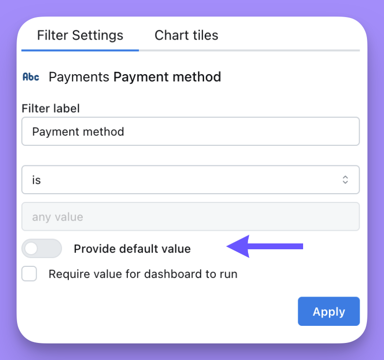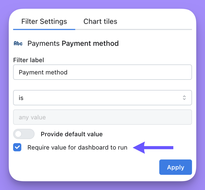 To learn more about adding filters to your dashboards, check out our guide on using filters.
