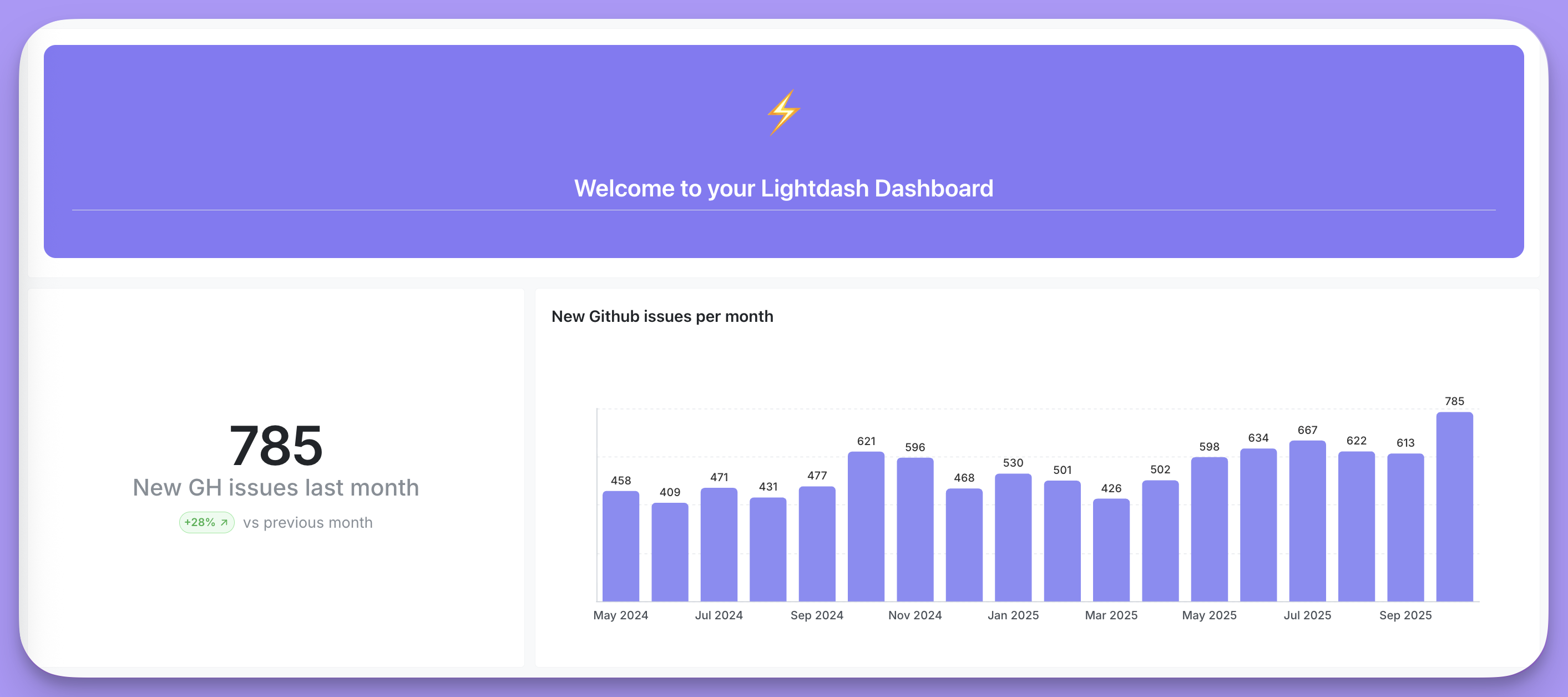 <h2 style="font-weight:600;font-size:24px">Welcome to your Lightdash Dashboard</h2>
