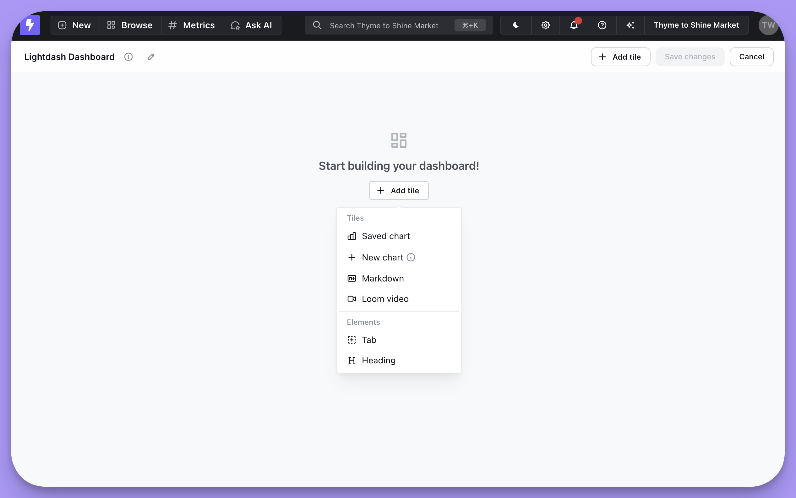 In addition to charts, you can also add markdown tiles or embedded Loom videos to explain the dashboard to people who will be using it.