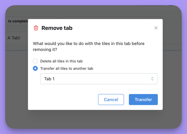 If you have content in a tab, you’ll have an option to safely remove that tab. This gives you an opportunity to transfer tab content to another tab. From there, choose which tab you’d like to transfer the content. This way, you can keep your content while removing the actual tab.