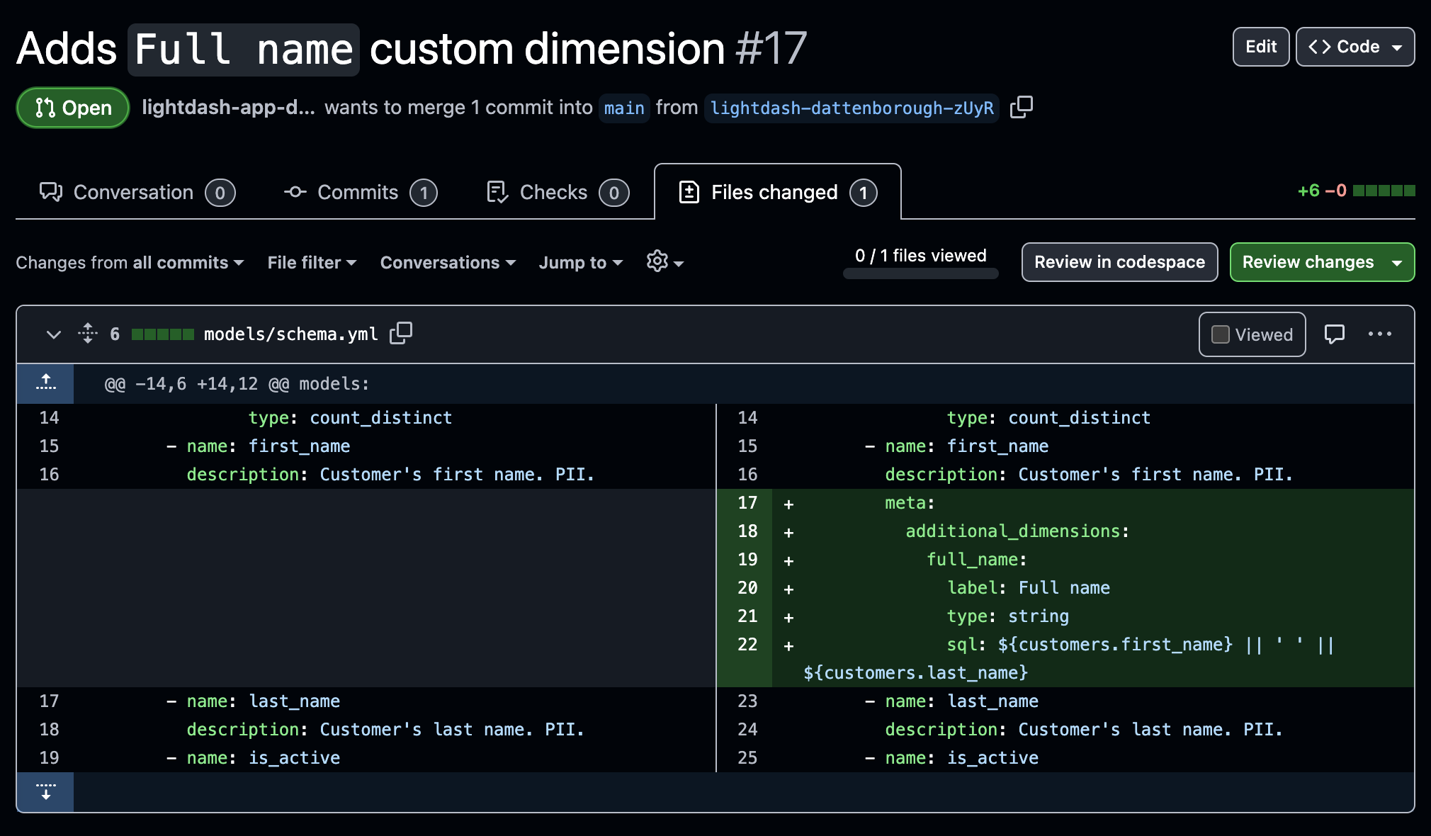Preview the Dimension YAML and open a pull request.