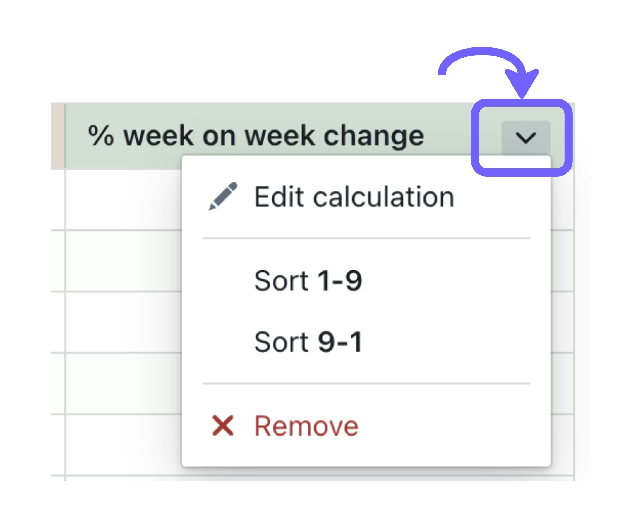 If you need to edit or delete a table calculation, you can just click on the toggle beside the field and do what you need to do!